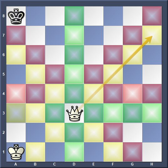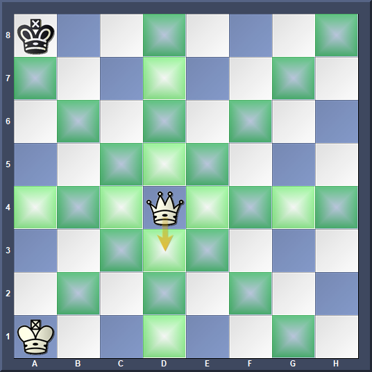 so moves from d4 to d3. The squares that White is thinking about are shown in colour on each diagram.